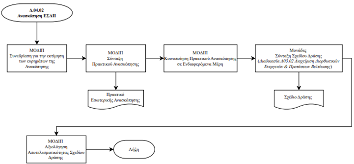 Η διαδικασία περιγράφει τον τρόπο με τον οποίο εξετάζεται στο σύνολό της η καταλληλότητα της δομής, η επάρκεια της οργάνωσης και η αποτελεσματικότητα λειτουργίας και εφαρμογής του ΕΣΔΠ.